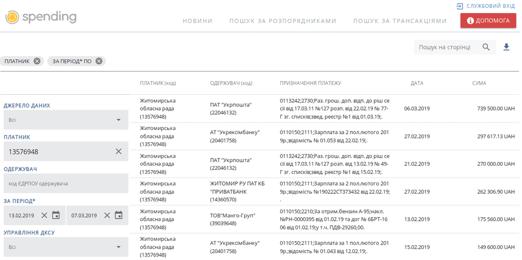 На єдиному урядовому порталі використання публічних коштів платіжні документи та договір із постачальником, ТОВ «Комфорт-Модерн», відсутні.