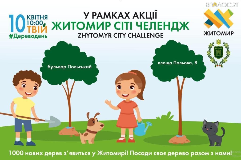 10 квітня о 10:00 год у Житомирі стартує акція «Zhytomyr City Challenge», у рамках якої у місті з’явиться 1000 нових дерев!