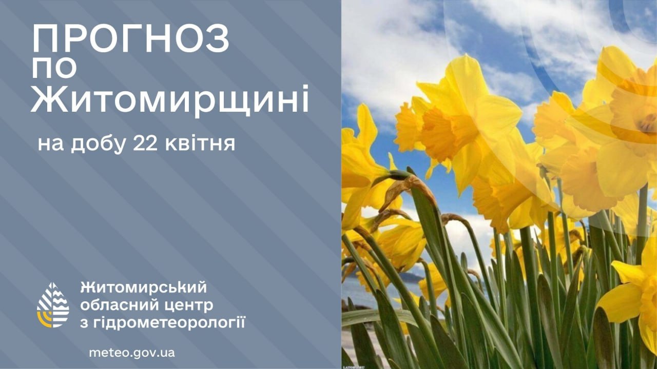 Вдень 23 квітня у Житомирі та Житомирській області пориви північно-західного вітру 15-20м/с. (І рівень небезпечності – жовтий)
