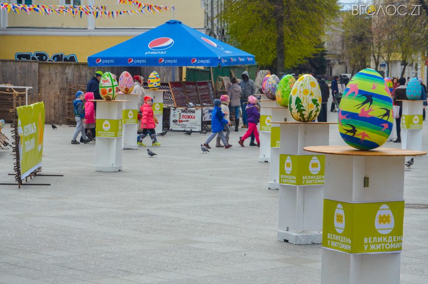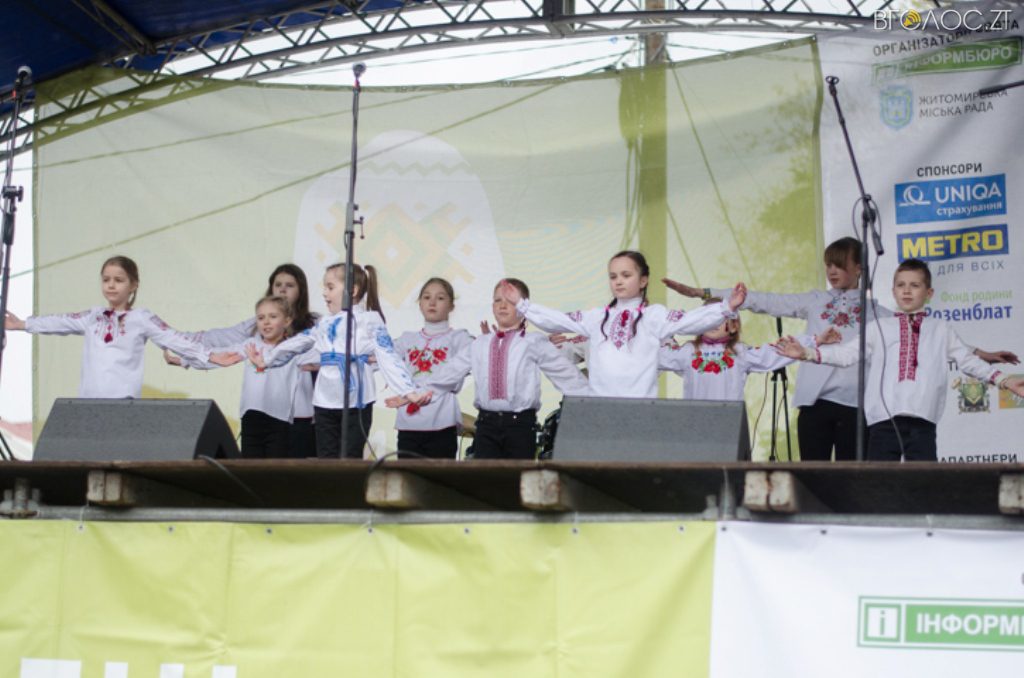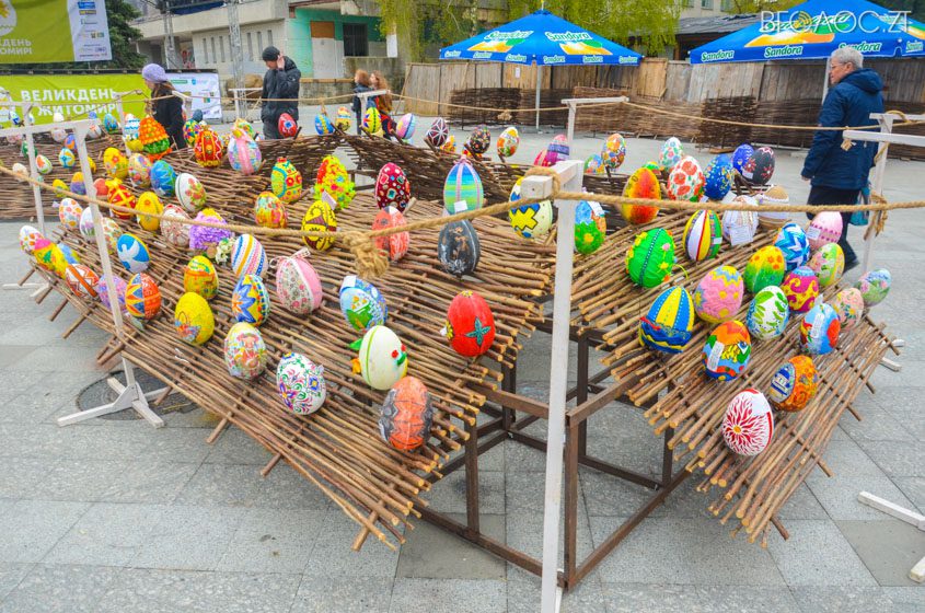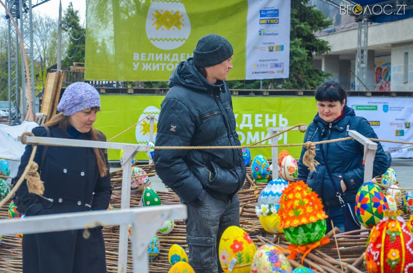 У перший день Великодня житомирян запросили на вулицю Михайлівську для спільного святкування. На встановленій сцені провели спільний мелебень. Паралельно на Михайлівській проходила виставка писанок та дитячих робіт.