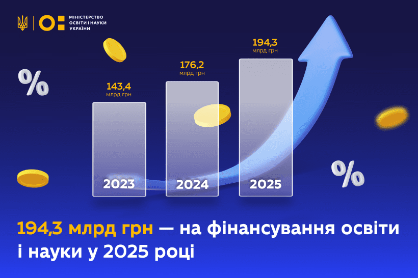 У бюджеті 2025 року Верховна Рада України передбачила на освіту 194,3 мільярди гривень. Про це повідомили у прес-службі Міністерства освіти та науки.