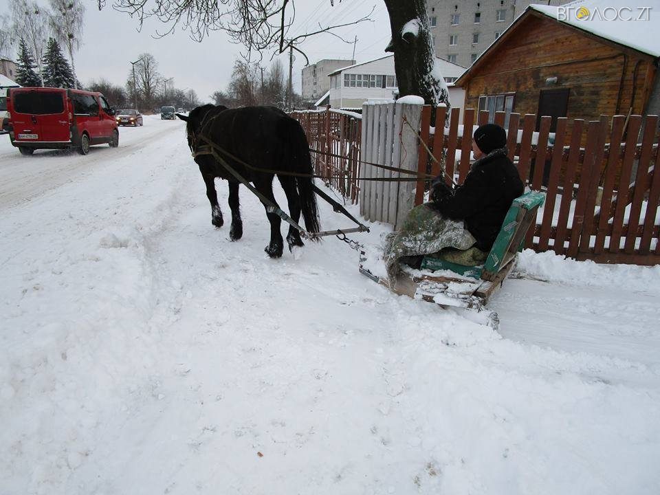 Під кінець святкових днів на Житомирщину прийшла справжня зима. Якщо для більшості сіл та селищ – снігопад перетворився на справжню проблему, у Ємільчиному – засніжені дороги і тротуари – не привід панікувати. Тут знайшли вихід із ситуації завдяки коням.