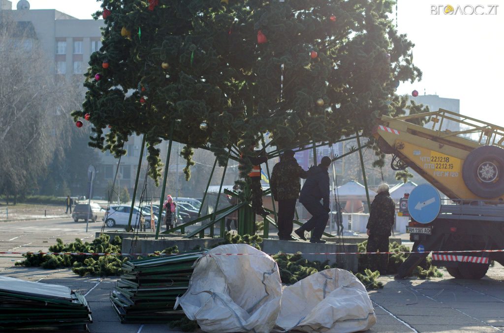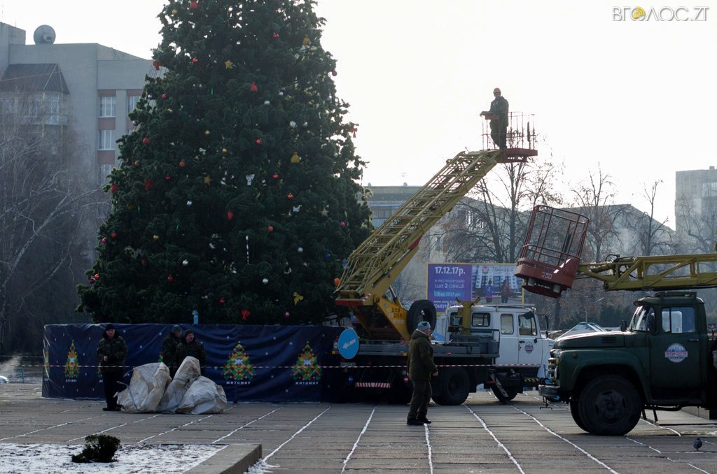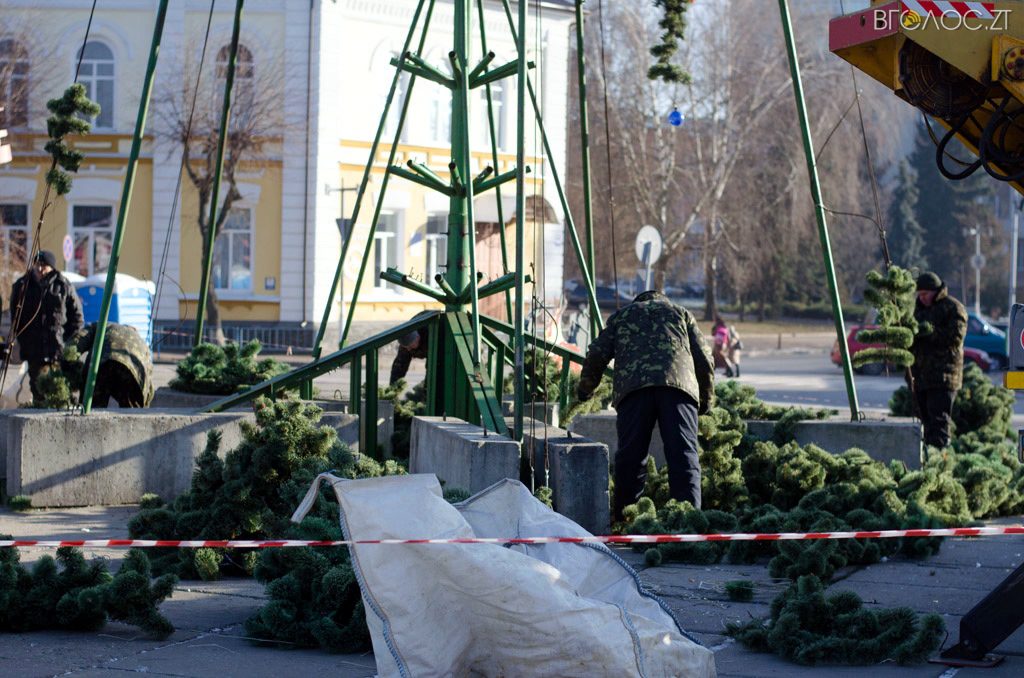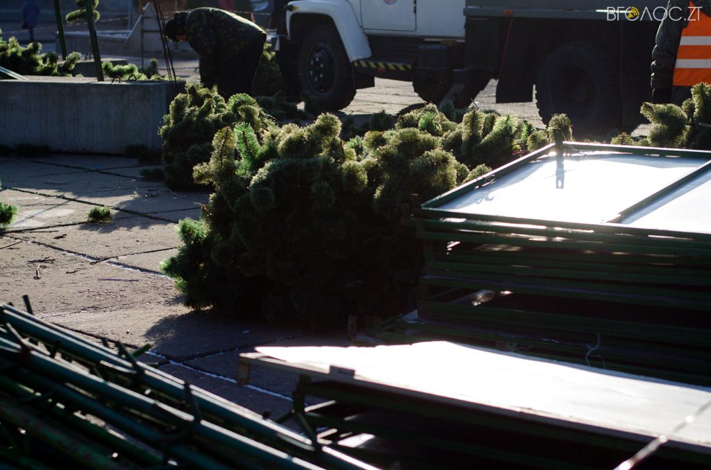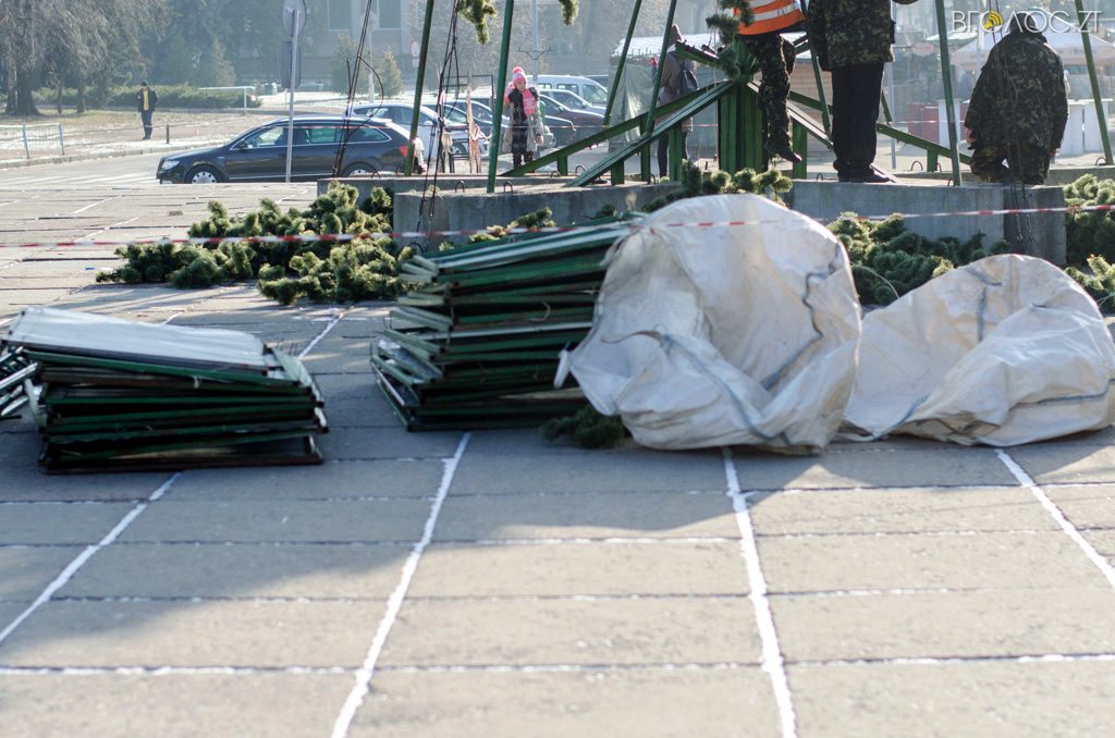На майдані імені С.П Корольова 15 січня почали демонтувати «головну» ялинку обласного центру. З новорічної ялинки знімають іграшки, гірлянди та гілки. Крім того, підприємці сьогодні мають прибрати будиночки «Різдвяного ярмарку». Подейкують, що різдвяне містечко «переїде» у гідропарк, де житомиряни відзначатимуть Водохреще.