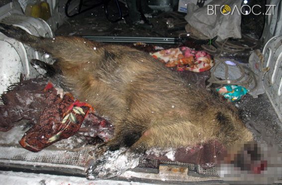 Під час огляду у вантажних відсіках транспортних засобів правоохоронці виявили туші двох диких свиней та тепловізор, за допомогою якого чоловік незаконно полював у темну пору доби. Туші тварин направили до ветеринарної лікарні для проведення дослідження.