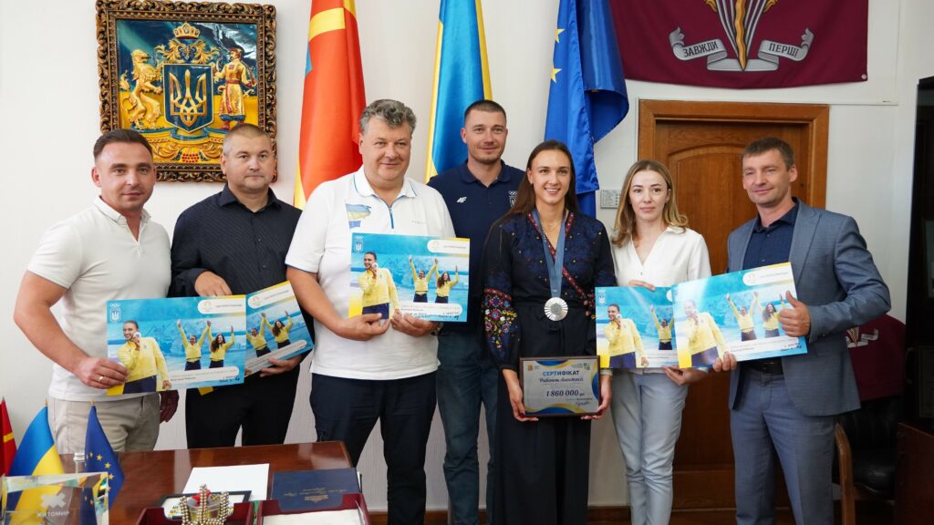 У середу, 18 вересня, начальник Житомирської обласної військової адміністрації вручив сертифікат на 1 мільйон 860 тисяч гривень українській спортсменці Анастасії Рибачок, веслувальниці-каноїстці, за здобуття срібної медалі на Олімпійських іграх 2024 року. Це визнання досягнень не лише на міжнародній арені, але й вагомий внесок у підтримку спортивної еліти регіону.