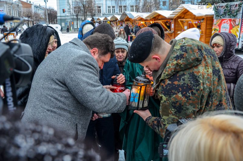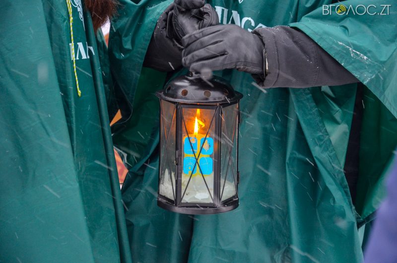 Вифлеємський вогонь прибув до Житомира із Києва, перед цим скаути отримали його на кордоні з Польщею.
