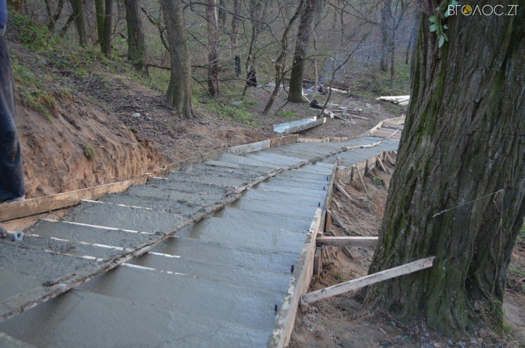 «Роботи з облаштування сходів та укладання плитки здійснює компанія «Імперія будівництва». З 180 метрів сходів, які слугуватимуть спуском до річки Кам’янки, вже збудовано 120. Крім того, тривають роботи з укладання плитки. Вже прокладено понад 300 метрів, всього заплановано 800 метрів», – йдеться у повідомленні.