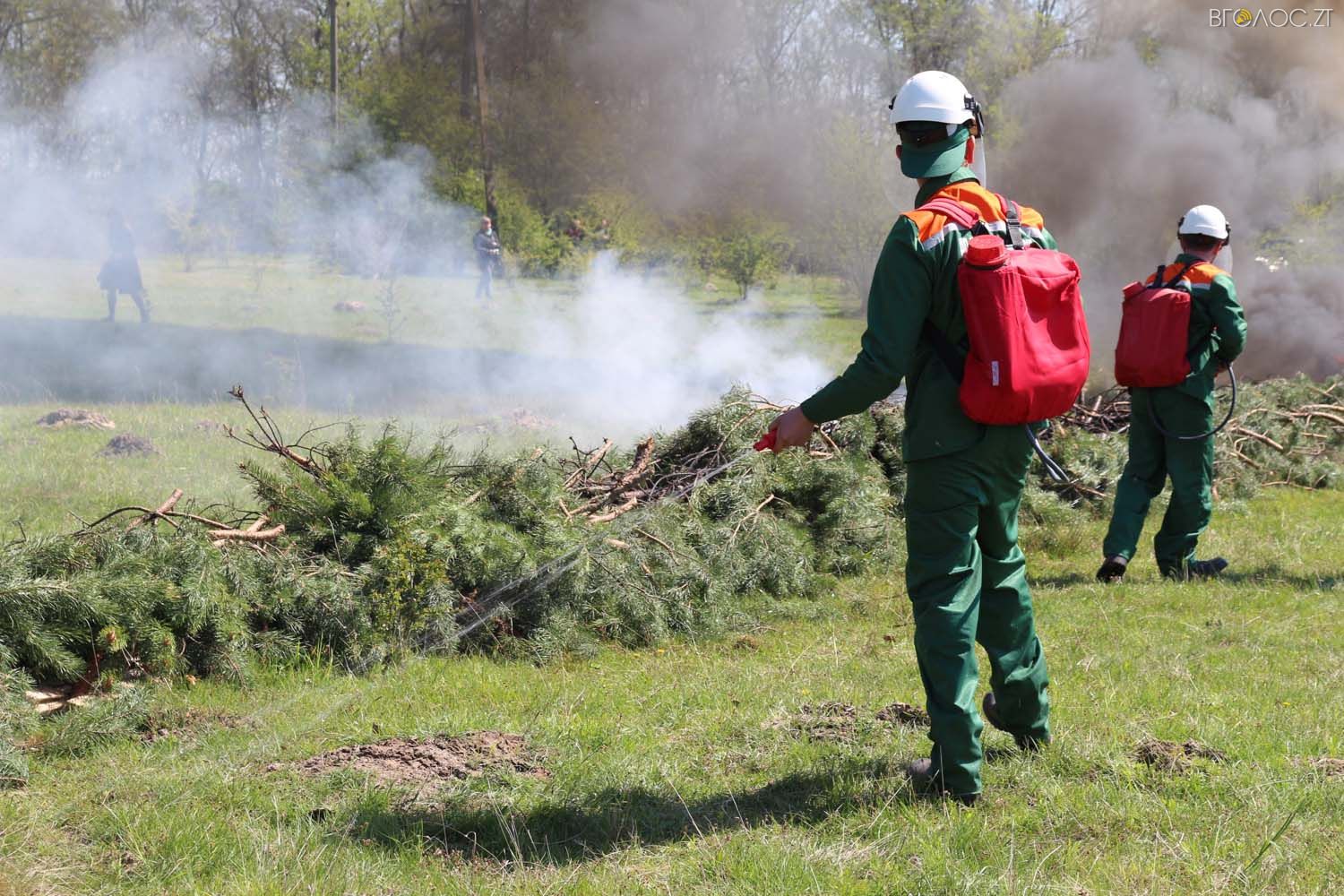 Спочатку відпрацьовували основні прийоми виявлення пожежі: гасили силами та засобами лісової пожежної станції за допомогою ранцевих оприскувачів, засипання грунтом, прокладання мінералізованих смуг.