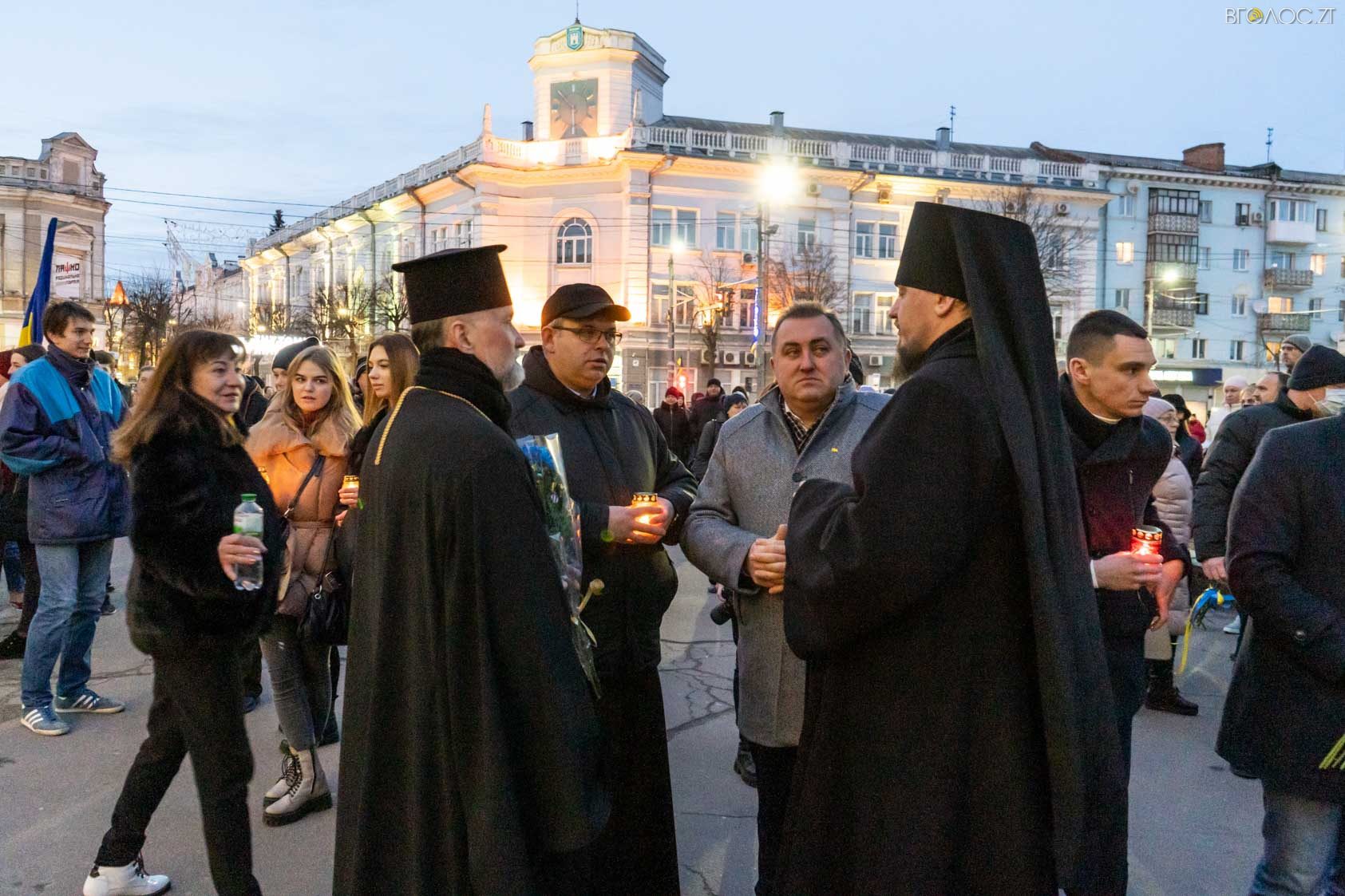 Сотні житомирян зібралися на майдані Корольова, запалили лампадки та хвилиною мовчання і молитвою вшанували світлу пам’ять Героїв Небесної Сотні та усіх Героїв України, які поклали своє життя на захист України.