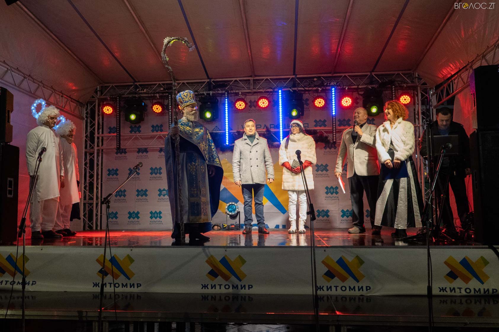 В день Святого Миколая на Михайлівській запалили вогнями головну ялинку міста. Більше сотні Житомирян прийшли подивитись на відкриття, незважаючи на погодні умови. Як запалювали новорічні вогні, дивіться у фоторепортажі від Дмитра Савченка.