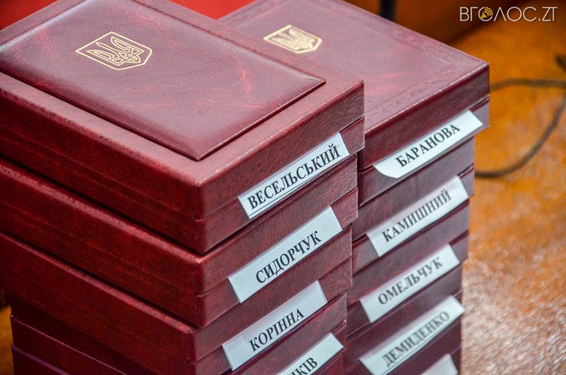 Перед початком сесії за особистий державний внесок у державне будівництво, соціально-економічний, науково-технічний, культурно-освітній розвиток України, вагомі трудові здобутки, високий професіоналізм Указами президента України державними відзнаками нагородили працівників освіти, культури, медицини, держслужбовців і підприємців області.
