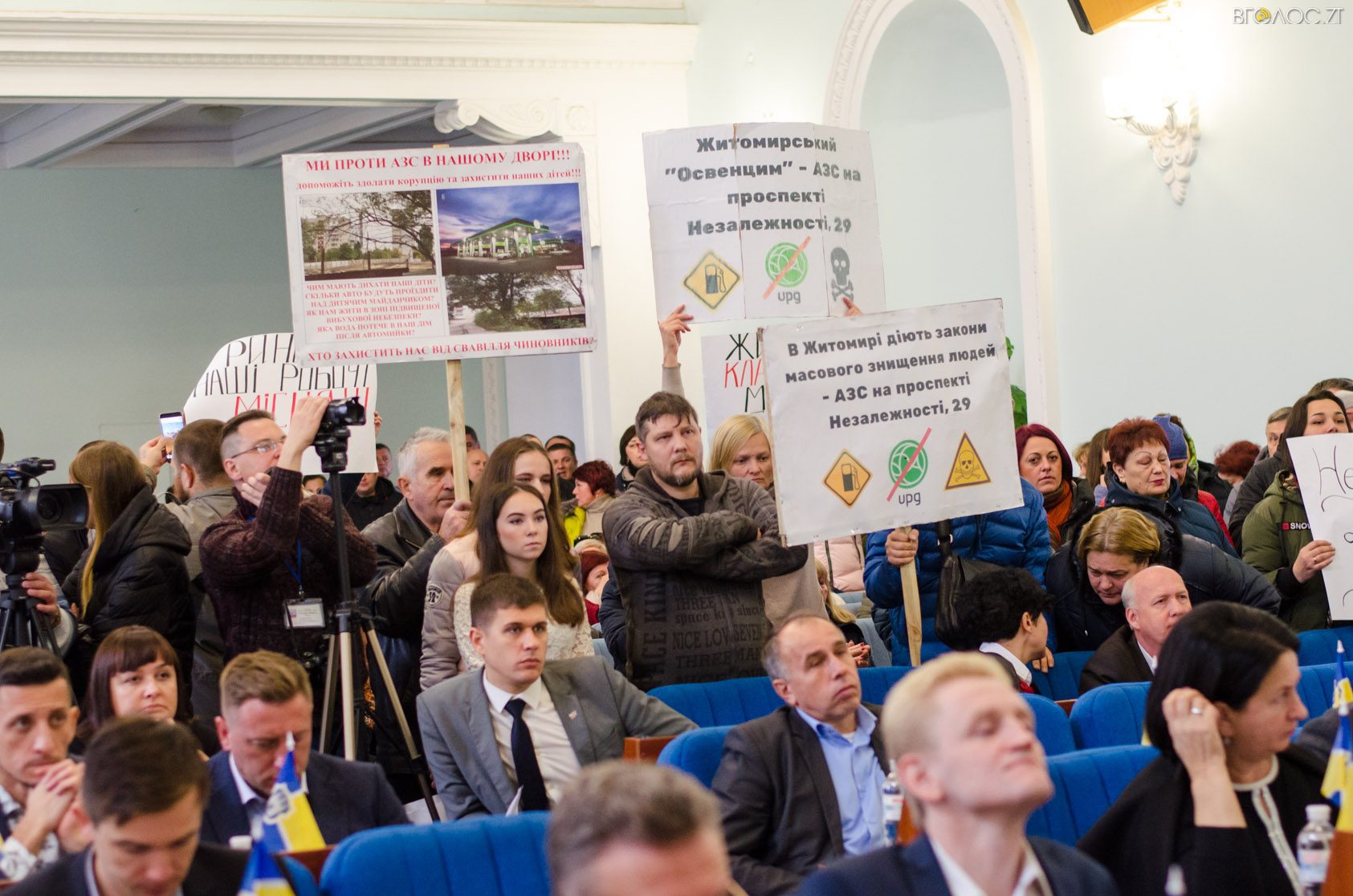 Чергова сесія Житомирської міської ради 31 жовтня розглянула понад 50 питань. Найгарячіші з них — питання будівництва АЗС на проспекті Незалежності та звільнення заступника міського голови.