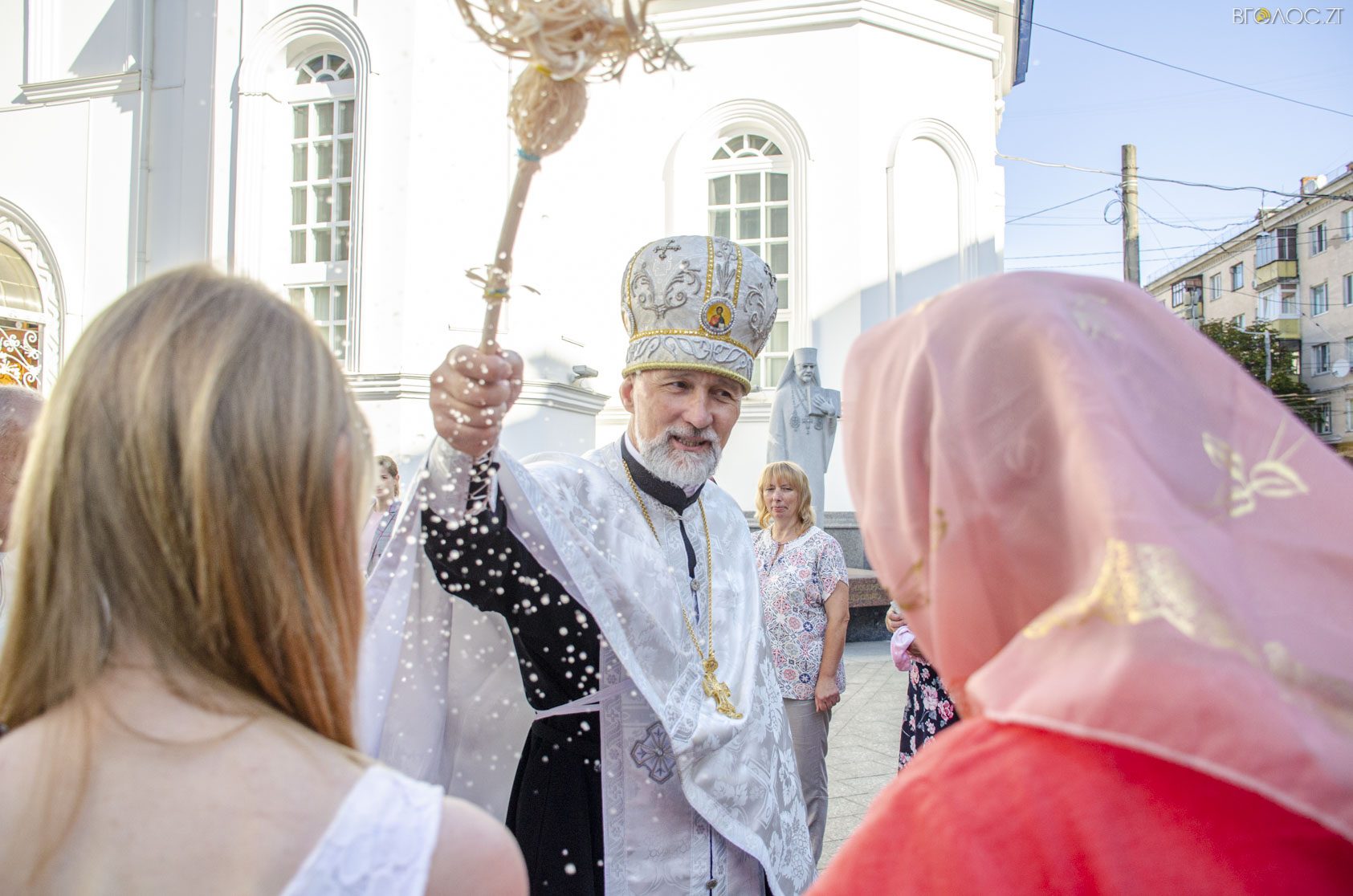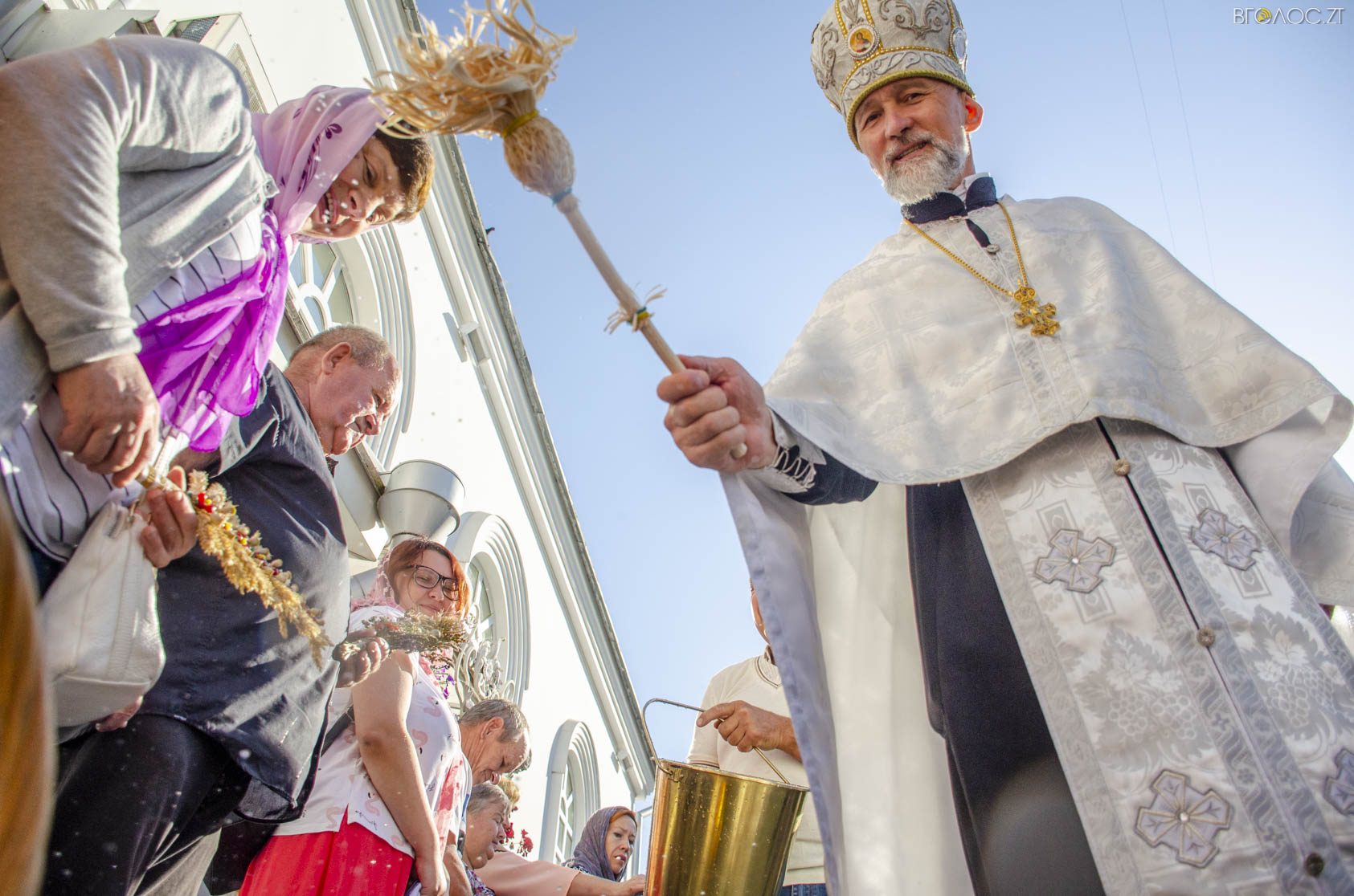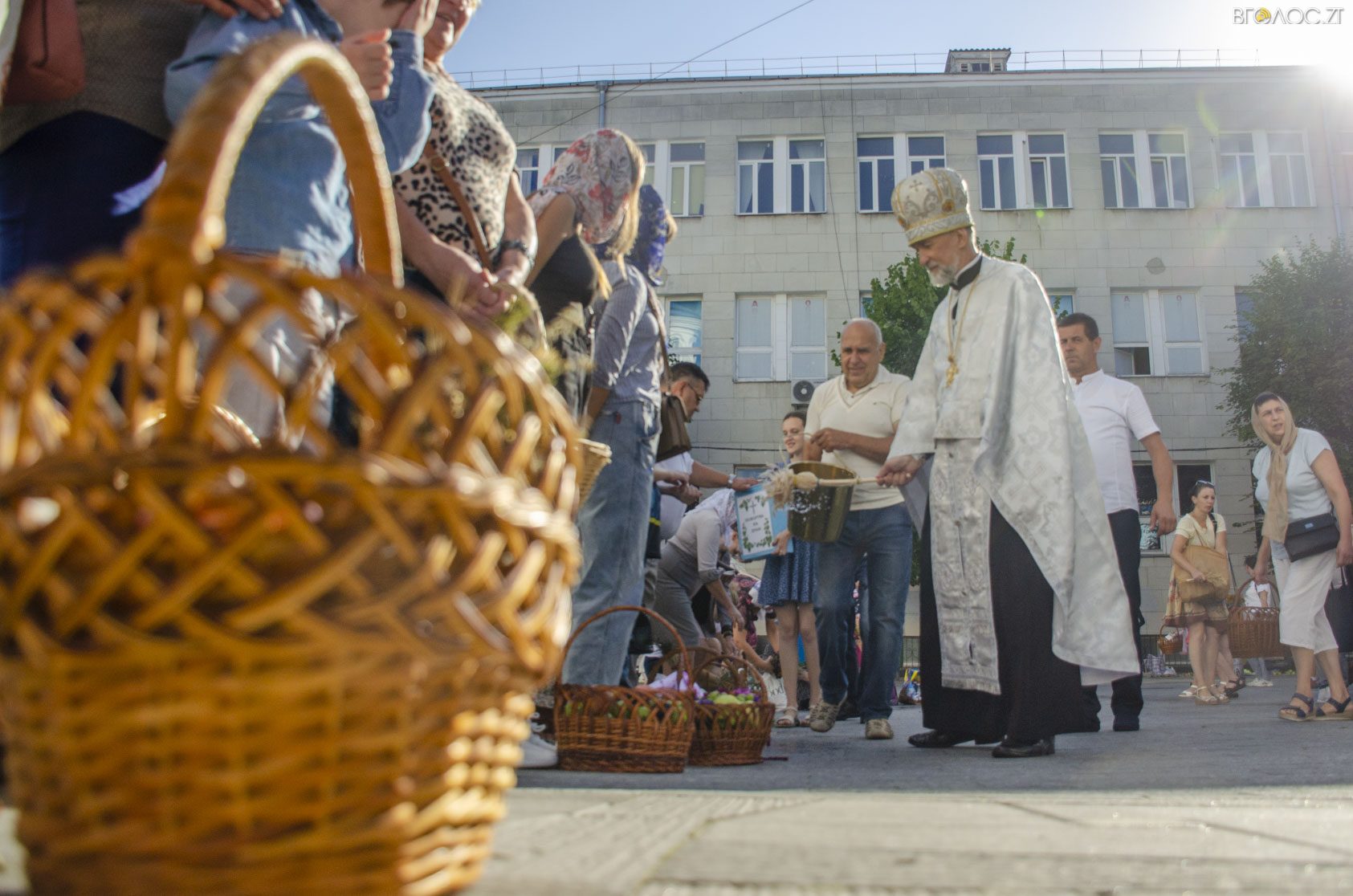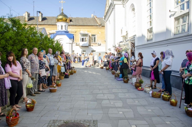 Попри війну, сотні житомирян традиційно прийшли до Михайлівського кафедрального собору 19 серпня, щоб освятити дари врожаю у день Преображення Господнього.