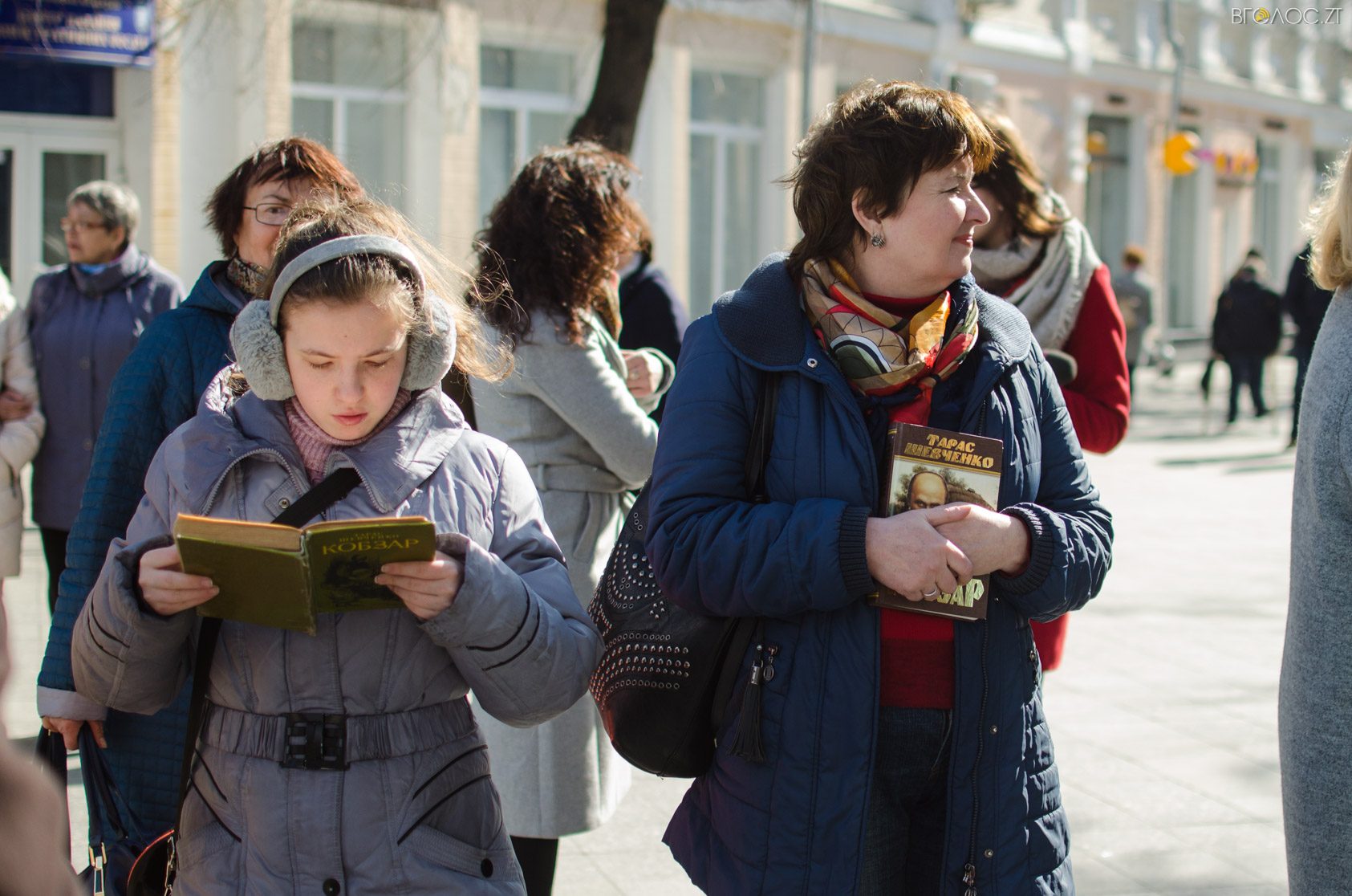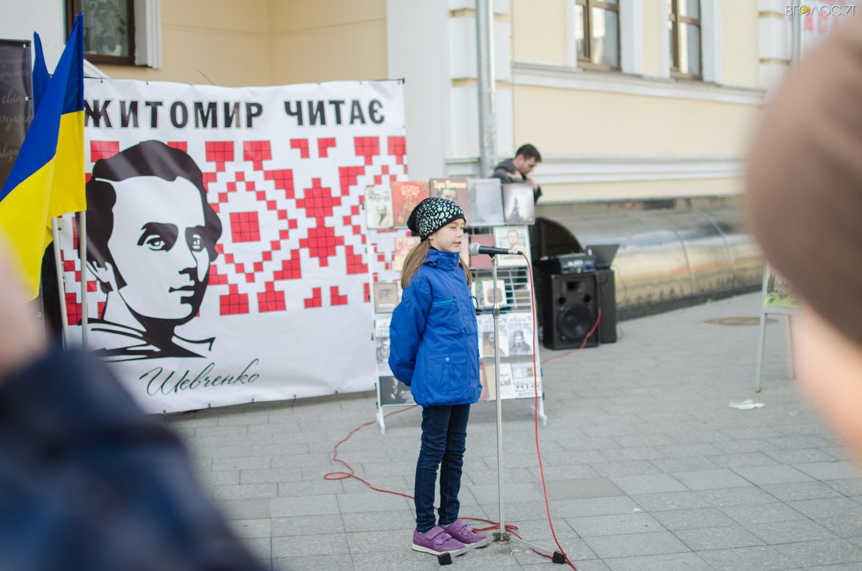 У Житомирі традиційно 9-10 березня відзначили шевченківські дні. Цьогоріч окрім звичного покладання містяни також читали вірші Кобзаря на центральній вулиці міста, Михайлівській.