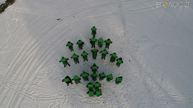 Учасники акції вишикувалась у вигляді «живої» зеленої ялинки, демонструючи єднання думок та спільність позицій. Адже останнім часом не зовсім кваліфіковані псевдоексперти поширюють думку серед населення про «надуману» проблему короїда і прагнуть заборонити усі види діяльності у лісі. На жаль, шкідник цього тільки і чекає…Масова акція повинна змінити думку громадськості і призвести до конструктивного діалогу між людьми та лісівниками. Естафету житомирські лісівники передають всім своїм колегам”, – йдеться у повідомленні.