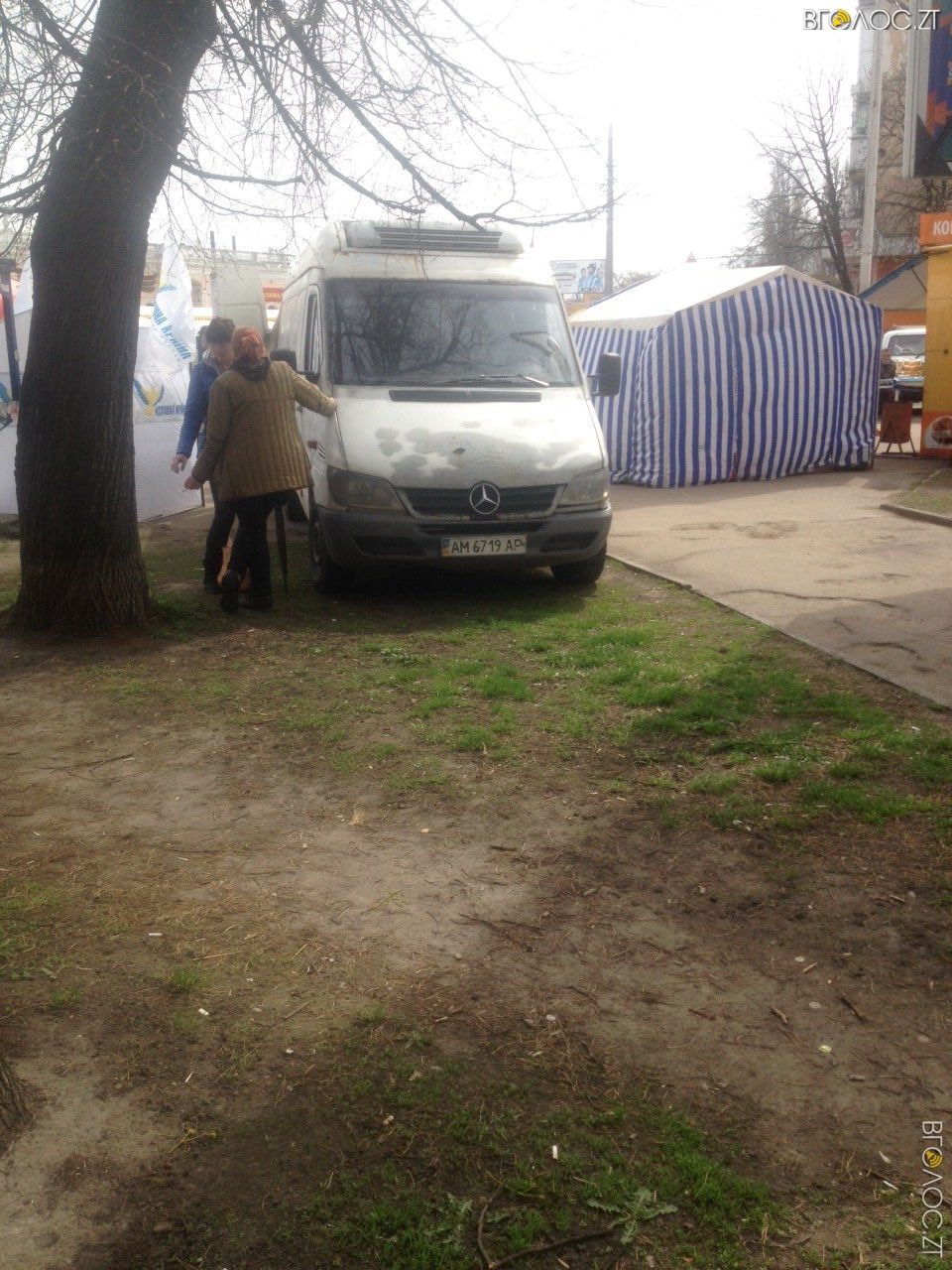 У Житомирі на вулиці Лятошинського щосуботи відбувається сільськогосподарський ярмарок «за цінами виробника». Торгівля йде без перекриття вулиці, бо більшість наметів розташовані прямо на газонах та тротуарах. Після ярмарку залишається купа сміття та понівечені дерева. Про це повідомив заступник КП «Зеленбуд» Володимир Савченко.