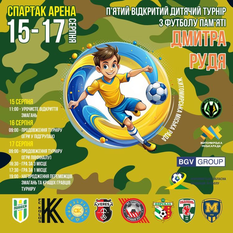 З 15 по 17 серпня у Житомирі пройде турнір імені Дмитра Рудя