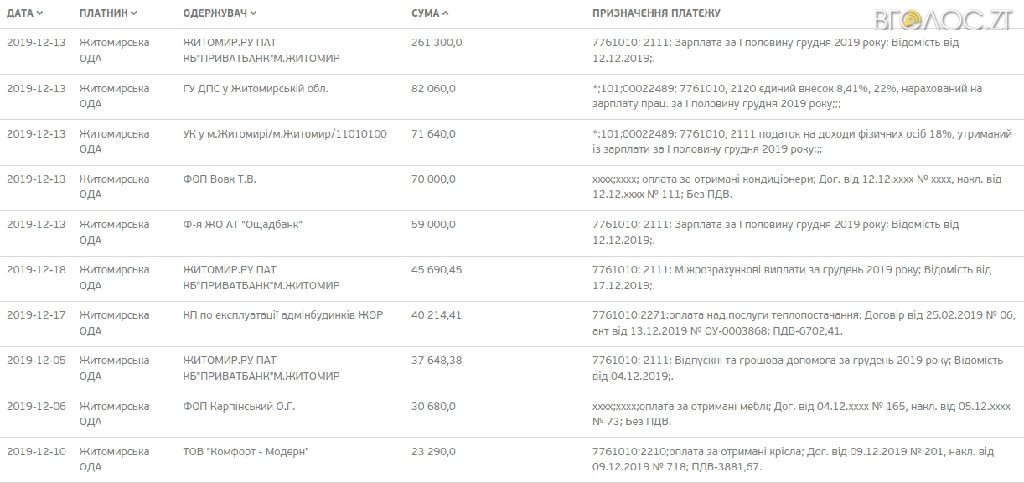 Так, 13 грудня ОДА заплатила фізичній особі-підприємцю Вовк Т. В. 70 тис. грн за кондиціонери. Трохи раніше адміністрація придбала стільці на понад 30 тис. грн та крісла на більше, ніж 23 тис. грн. Всі видатки проводили місцевим фірмам та підприємцям.