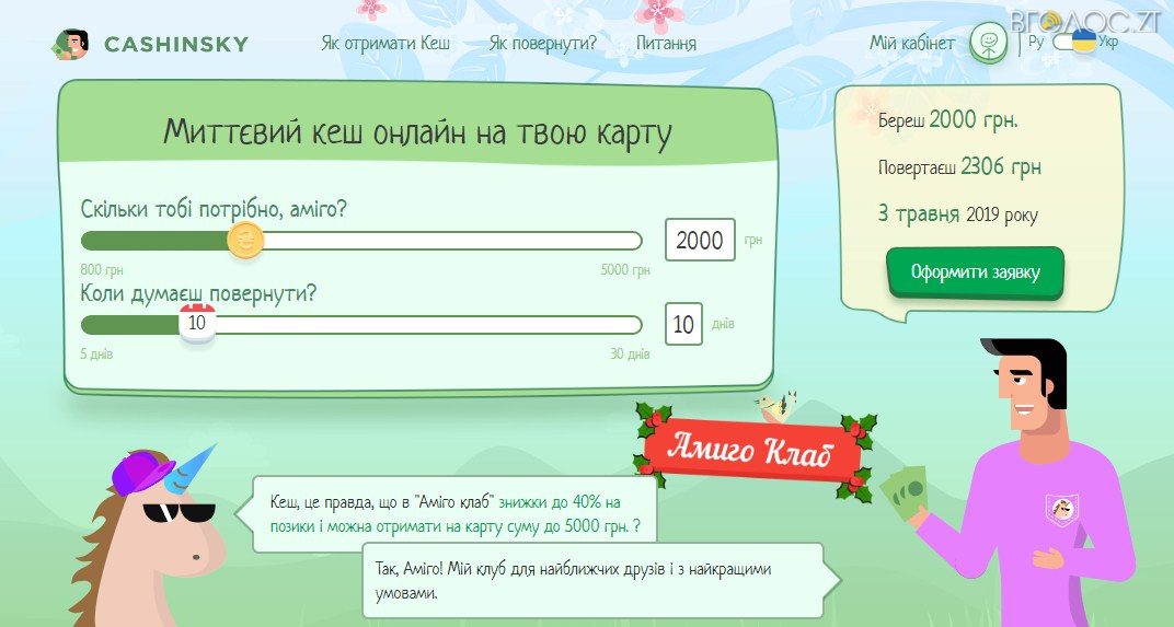 Особливу увагу слід звернути на другий пункт. Звертаючись в Cashinsky, позичальник звільняється від необхідності підтверджувати офіційне місце роботи, дохід за останні кілька місяців, збирати десятки документів.