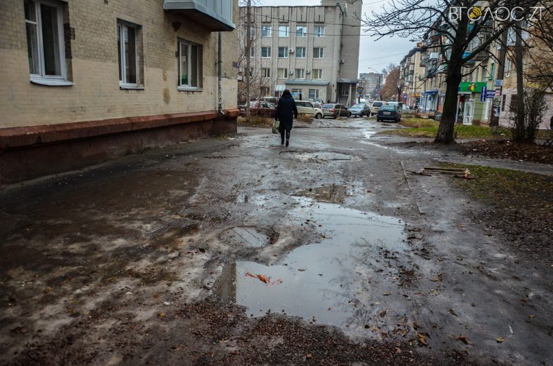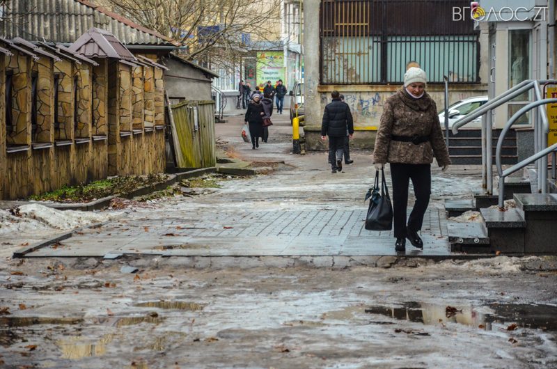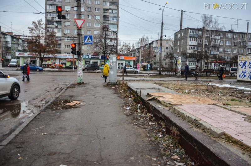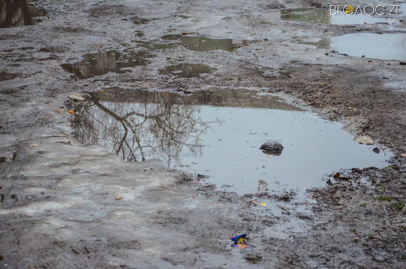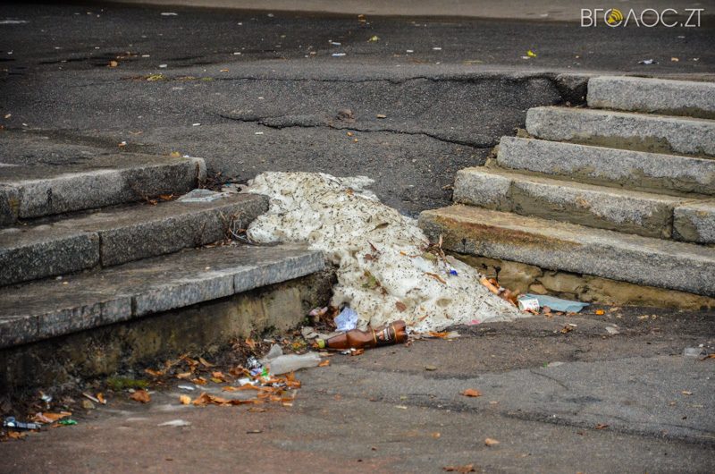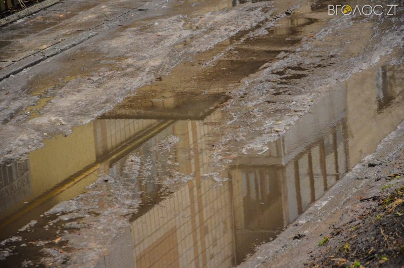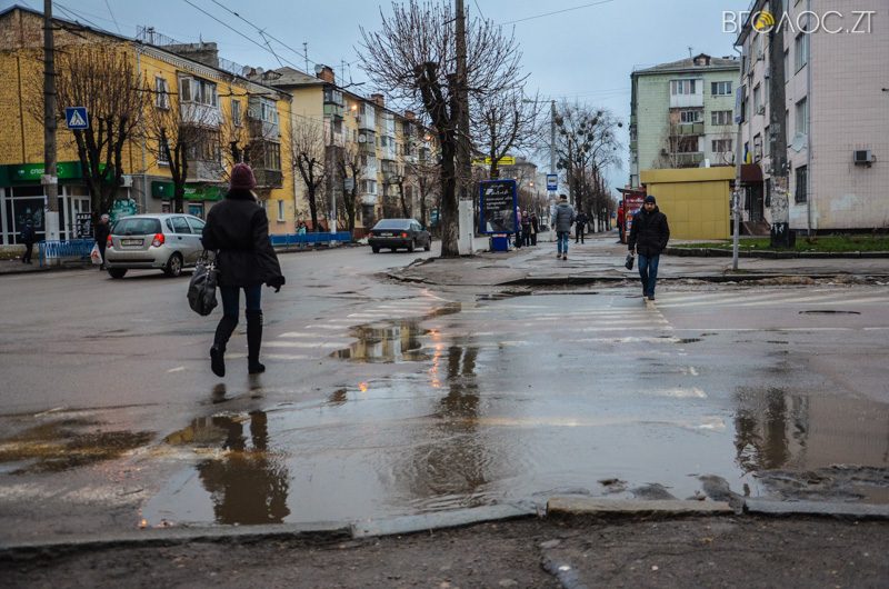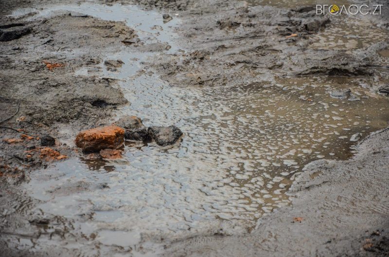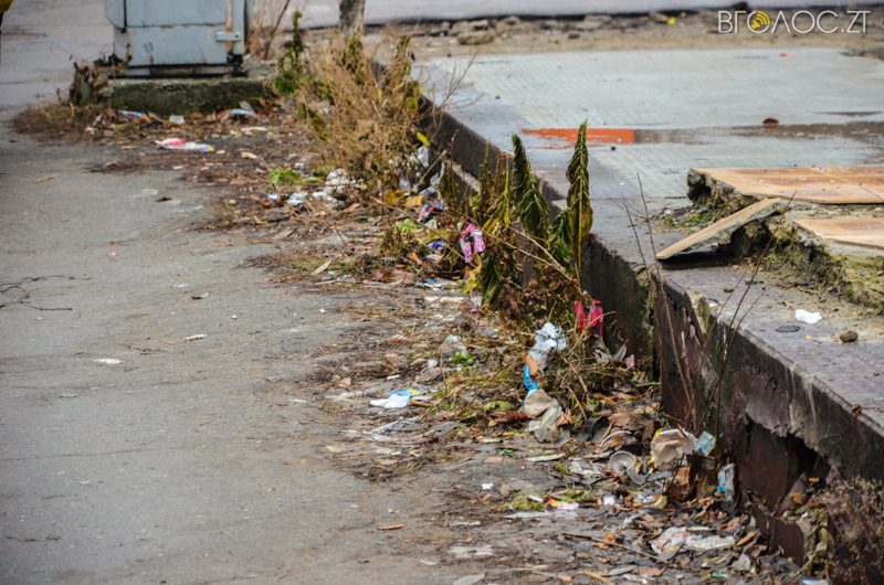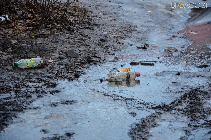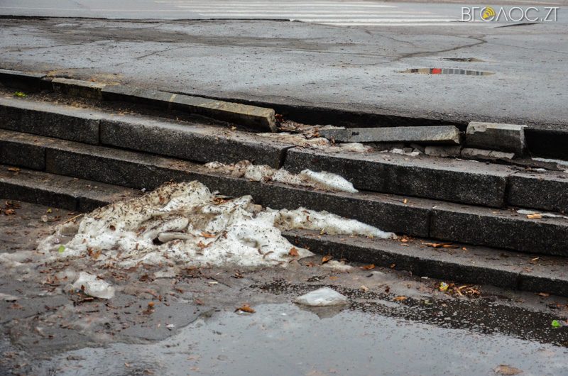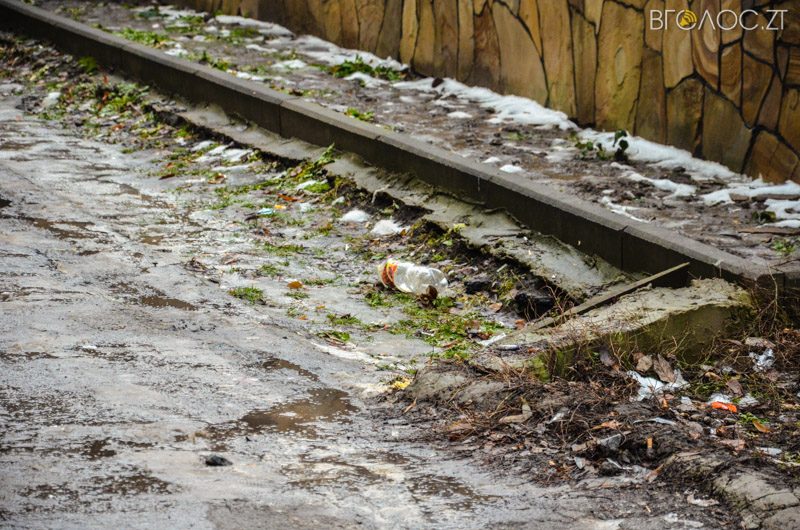 Сніг зійшов, а вилізли ями, вибоїни і купа сміття… У Житомирі мокро і брудно. Городяни найбільше скаржаться на багнюку, яку доводиться пішоходам “місити” на розритому тротуарі по вулиці Київській.