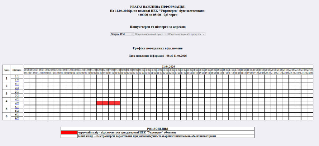 З графіками погодинних відключень електроенергії (ГПВ) можна ознайомитись на нашому сайті: