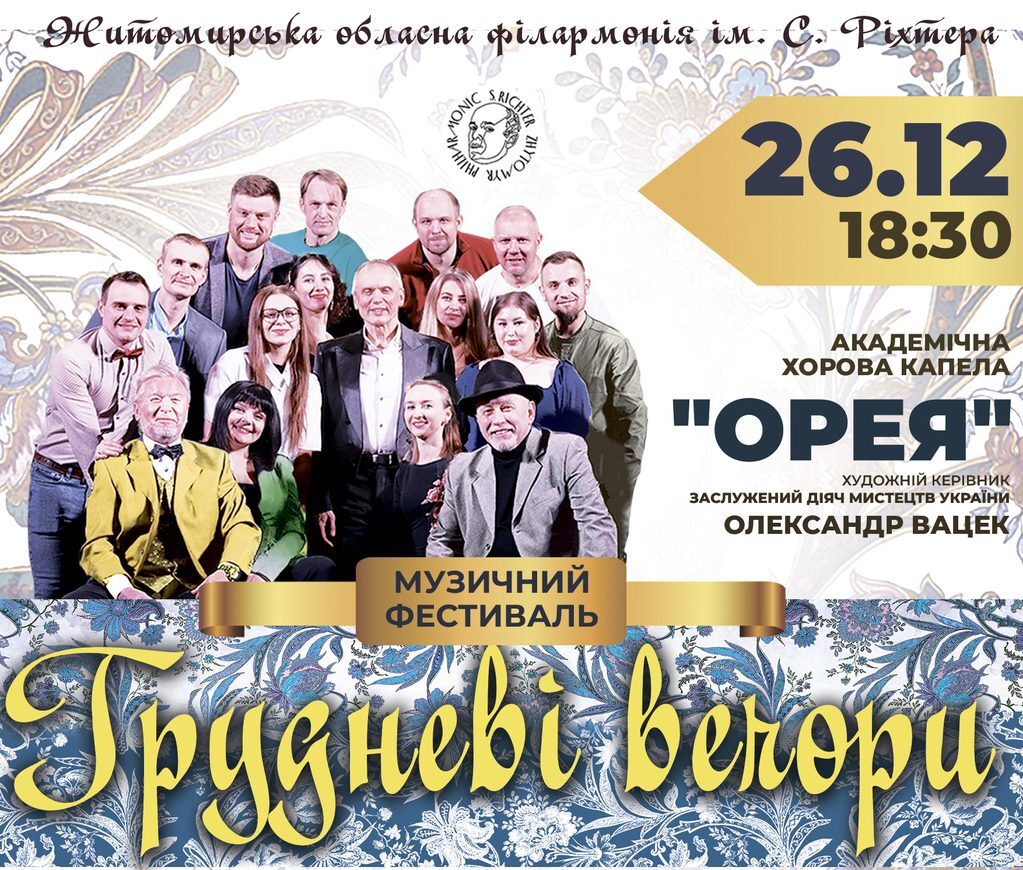 Запрошуємо 26 грудня та 27 грудня до Житомирської обласної філармонії ім. С. Ріхтера на музичний фестиваль «Грудневі вечори»!