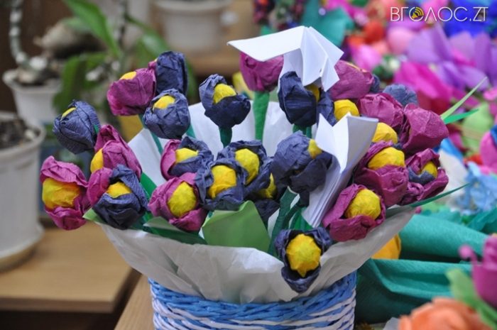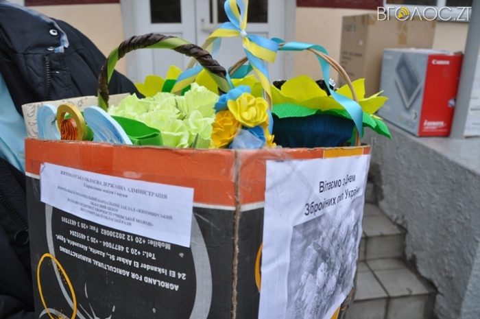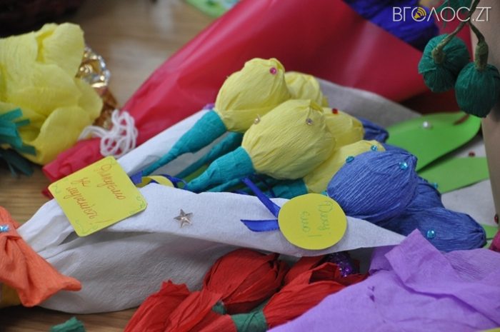 Це вироби із бісеру, пап’є-маше, квіти з цукерками, листівки, новорічні прикраси тощо. Передали подарунки 6 грудня начальник управління освіти та науки ОДА Лариса Шевчук та її заступник Ольга Липовецька, а також директор центру науково-технічної творчості Юрій Коцюба.