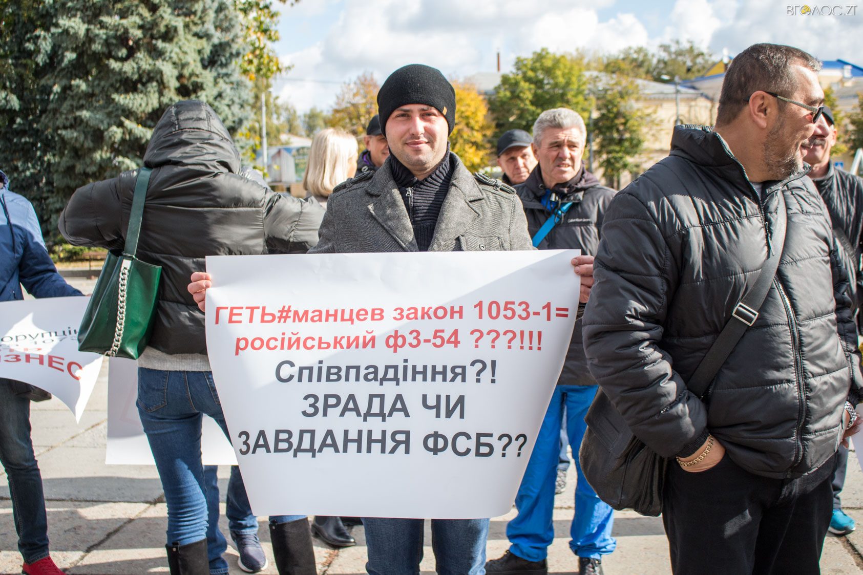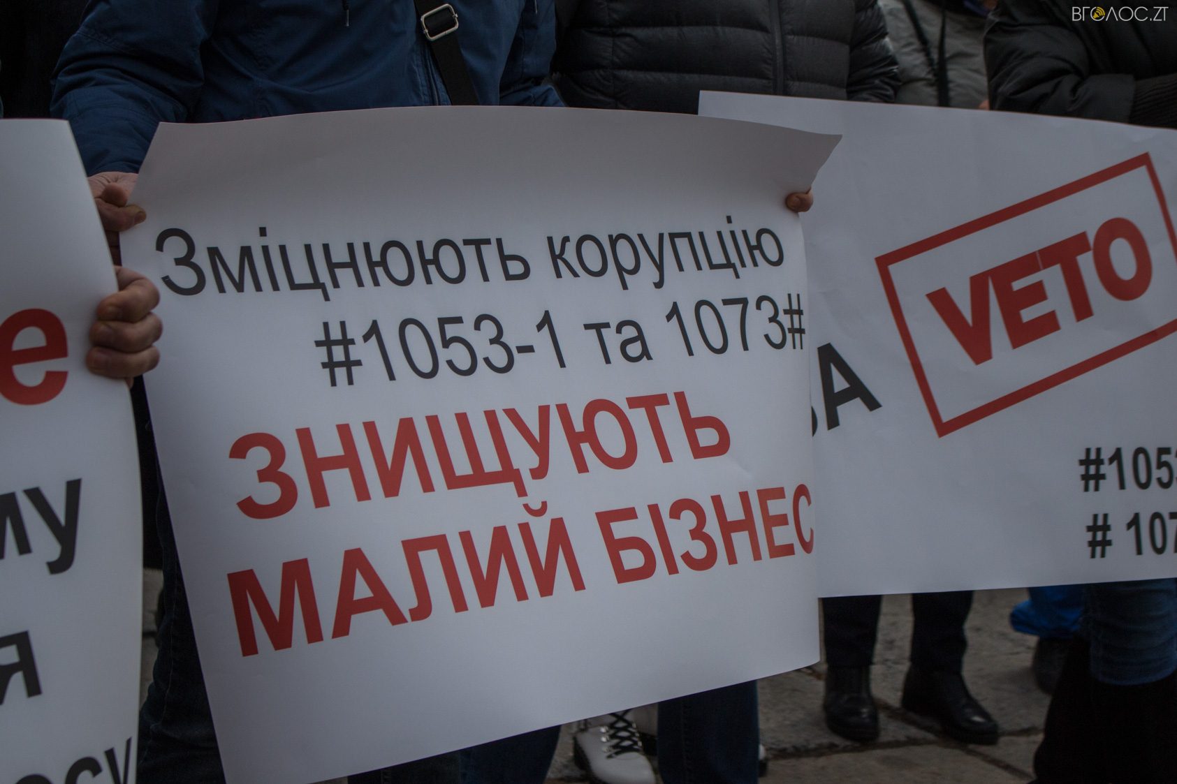 Близько сотні представників малого та середнього бізнесу Житомира вийшли 7 жовтня під стіни облдержадміністрації на знак протесту проти законів 1073 та 1053-1. Підприємці вважають, що ці закони знищать спрощену систему оподаткування.