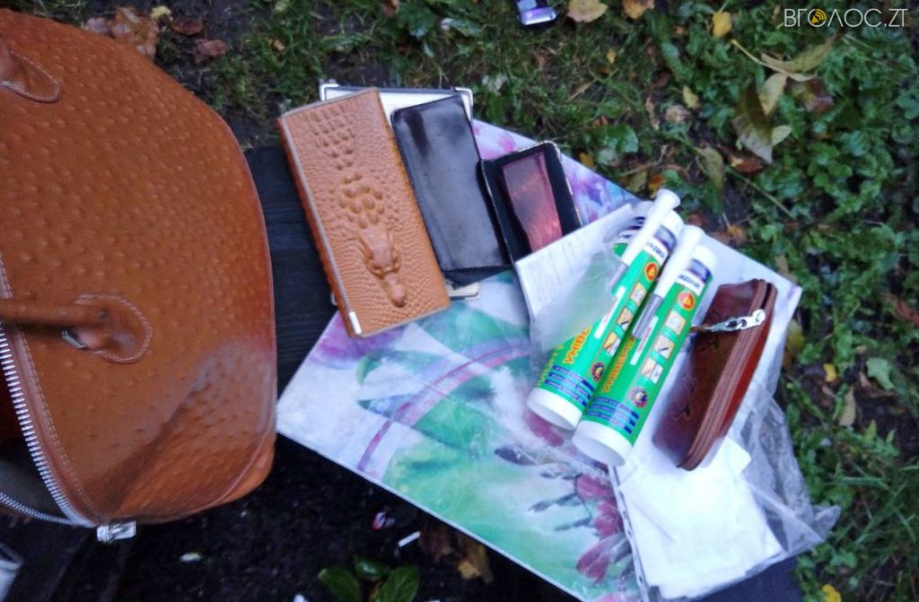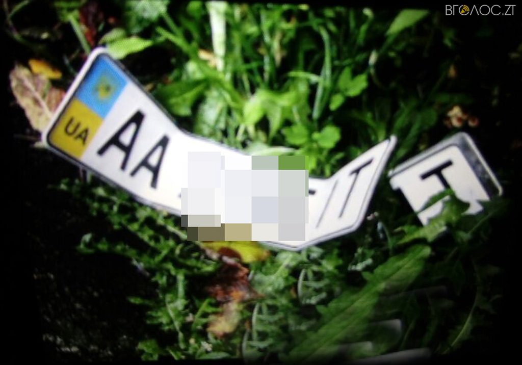 Зірвані автомобільні номерні знаки та жіночу сумку виявив один із житомирян у подвір’ї свого будинку. Виявилося, що сумочка (вже без грошей, але з документами) належить пограбованій годину тому житомирянці, а номери машини – розшукуваному авто.
