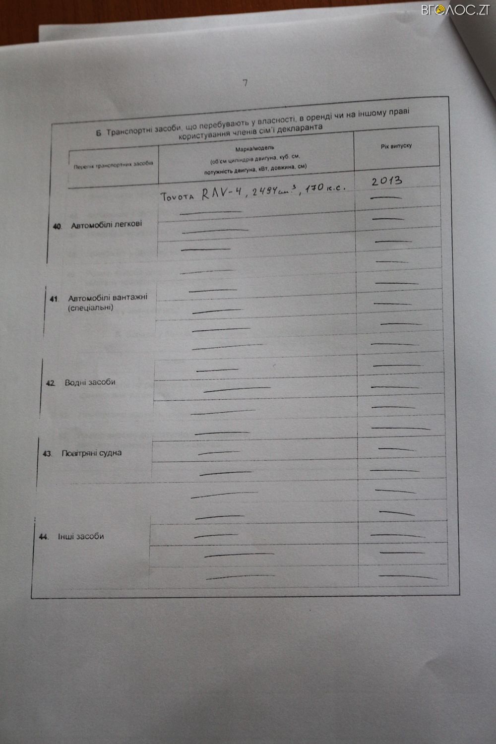 У судді два автомобілі – Toyota Land Cruiser – 150 2010 року випуску та Nissan Micra 2008 року. У дружини Жизневського – квартира у Хмельницькому та автомобіль Toyota RAV – 4 2013 року випуску.