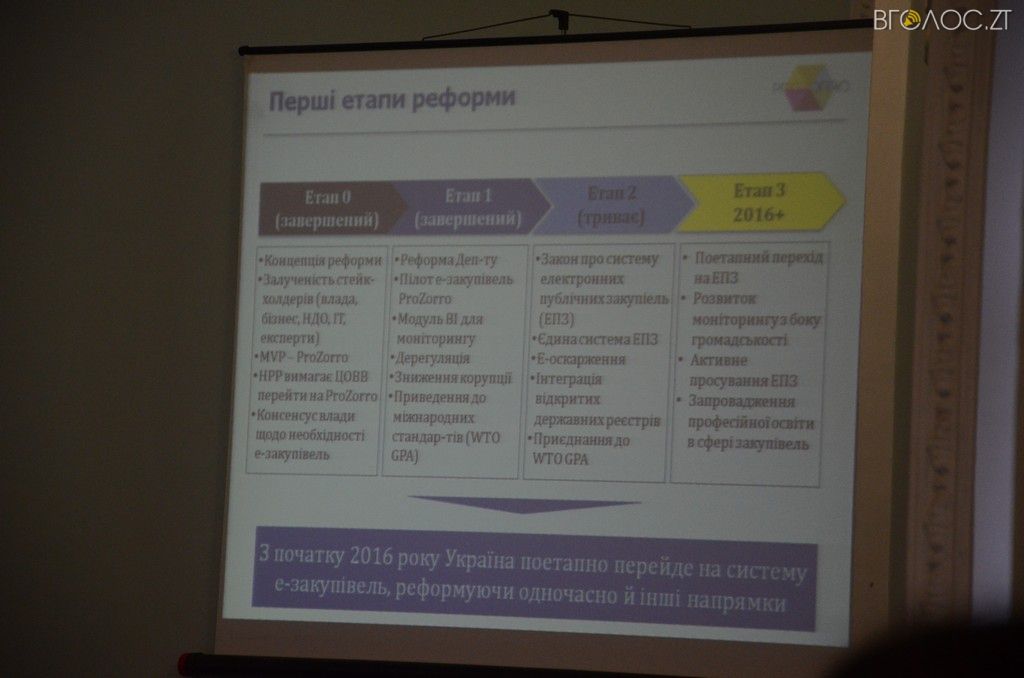 “Прорахувати результат у рамках Житомира наперед неможливо, але система ProZorro є обов’язковою з серпня не тільки органам державної влади, але й місцевого самоврядування та комунальних підприємств. З 1 квітня ця система буде обов’язковою для центральних органів влади. Вже є приклади, коли заощаджують від 20 до 70 % від стартової ціни”, – розповів директор департаменту економічного розвитку Житомирської міської ради Микола Костриця.