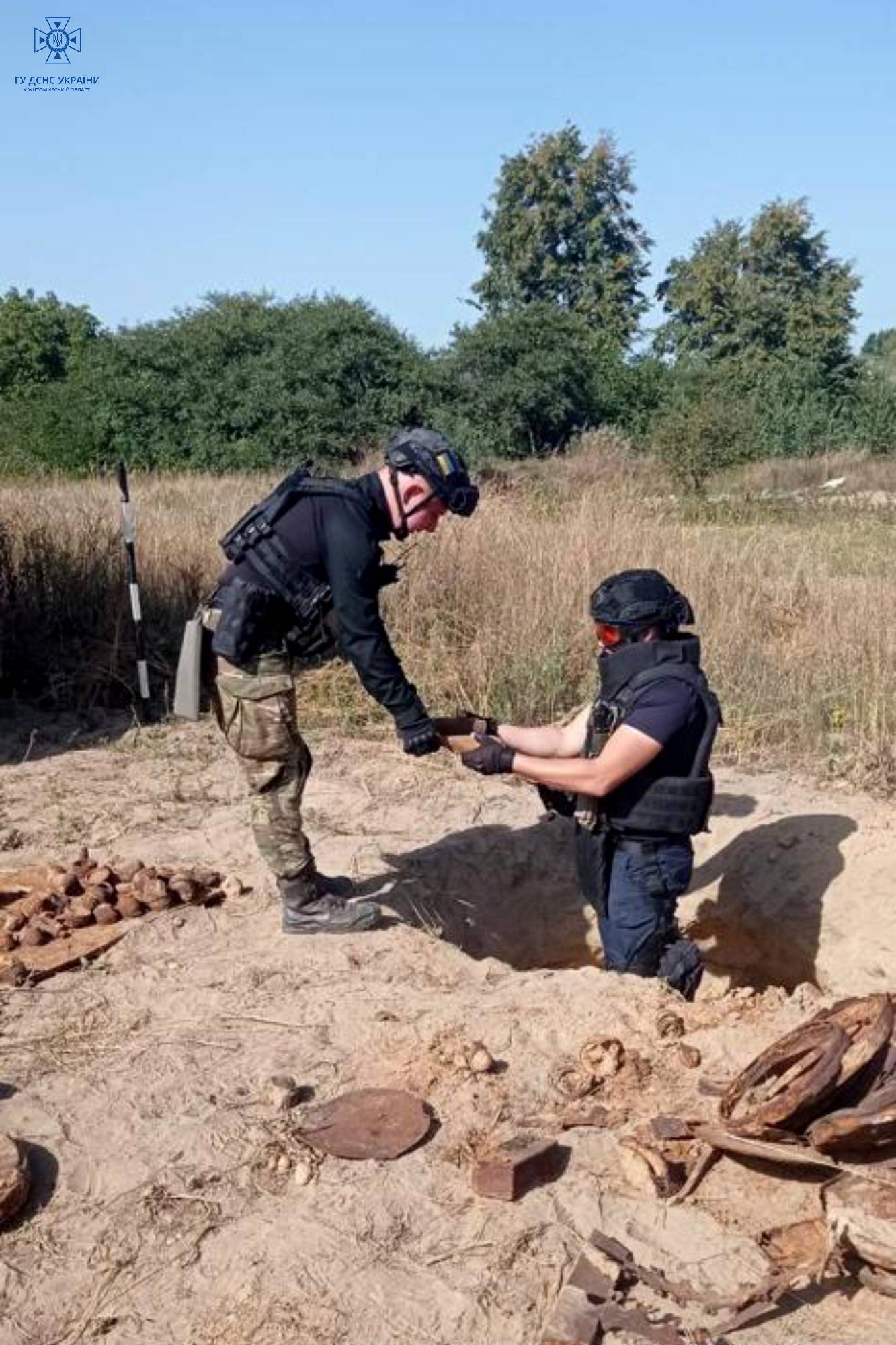 За словами рятувальників, на городі містянки вони знайшли 82 мінометні і 3 протитанкові міни та 8 ручних гранат. Всі предмети знаходилися під землею. Піротехніки Державної служби з надзвичайних ситуацій вилучили небезпечні знахідки та знищили їх.