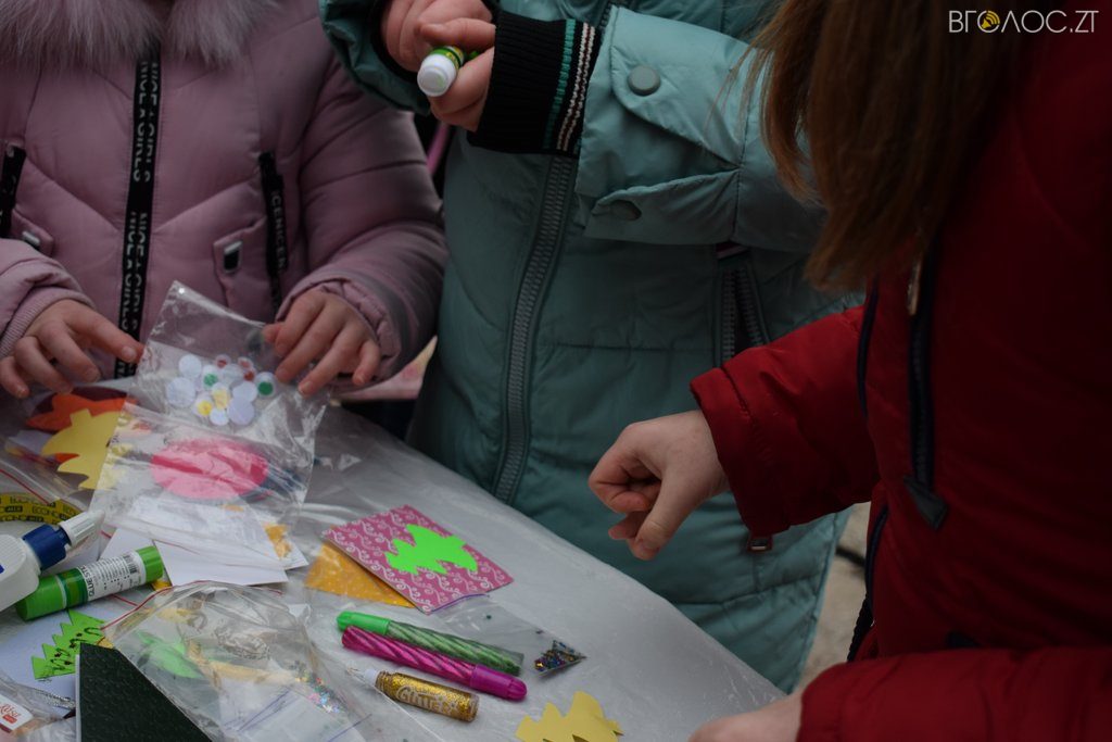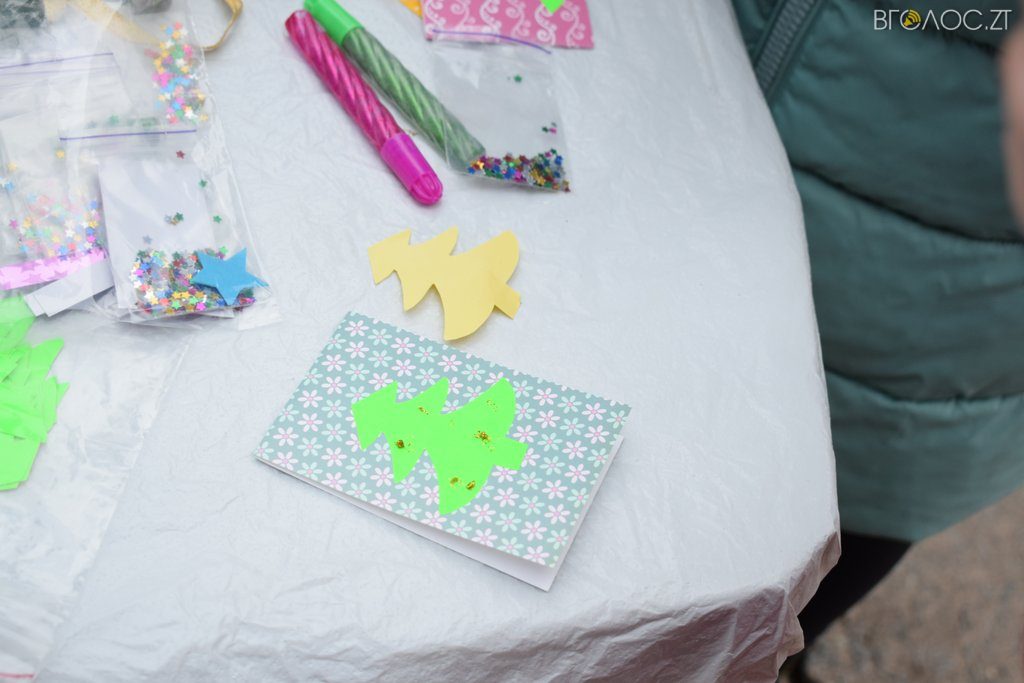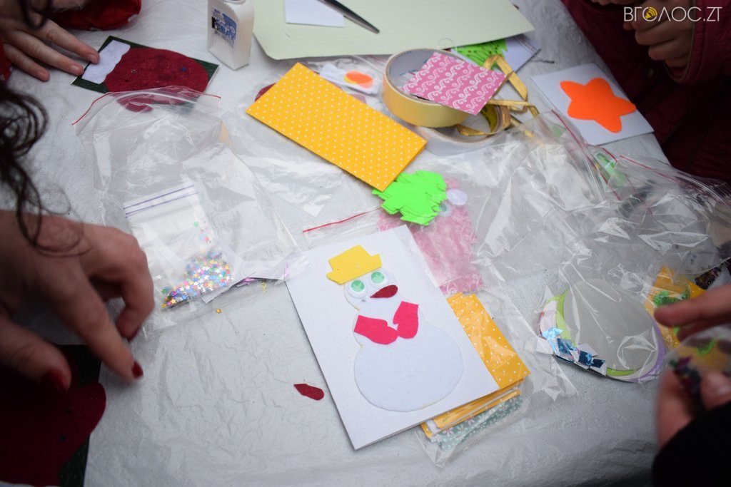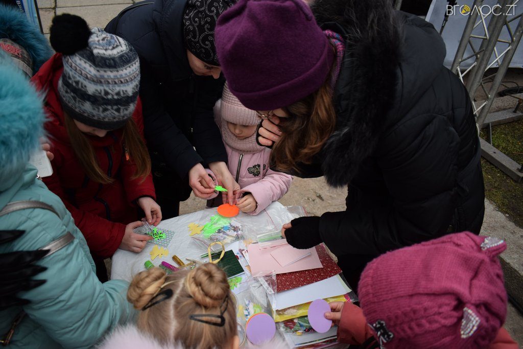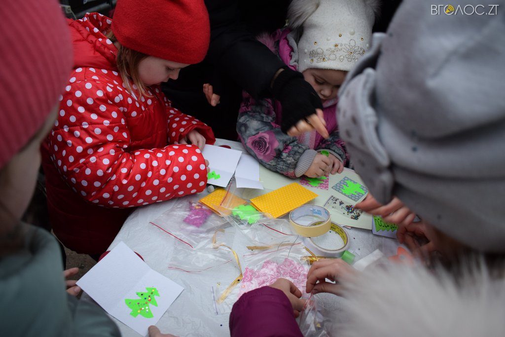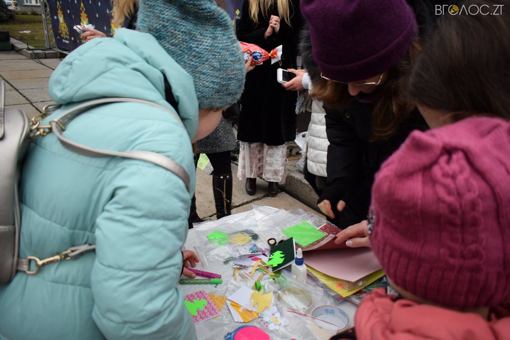 Діти проходили чудовий квест, виконували різноманітні завдання, танцювали, водили хороводи. На майданчику діяла «Фабрика новорічних ідей», де малеча могла зробити чудові поробки на ялинку та листівки.
