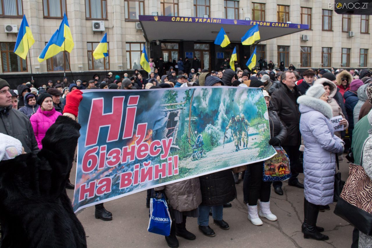 У перший день весни, 1 березня, кількасот житомирян вийшли на майдан Корольова, щоб дати оцінку президенту Порошенку та його команді, які ведуть спільний бізнес із Росією та заробляють на крові.