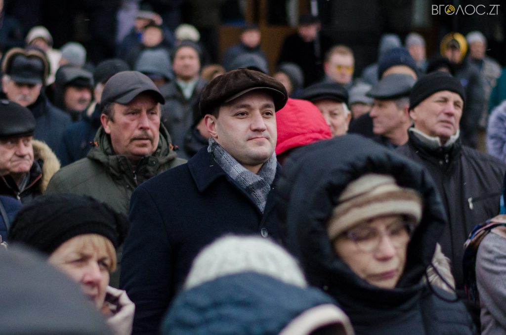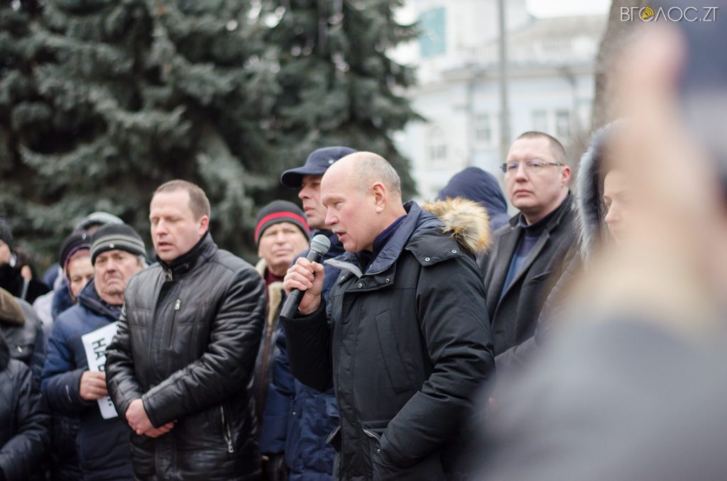 Голова фракції «Батьківщина» у Житомирській обласній раді Володимир Кропивницький, який був ведучим заходу, закликав присутніх на майдані дати оцінку діям президента та його оточення.