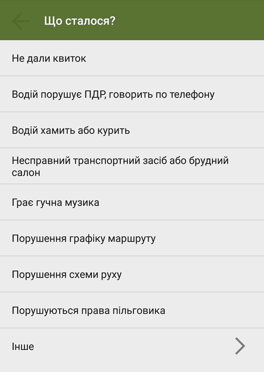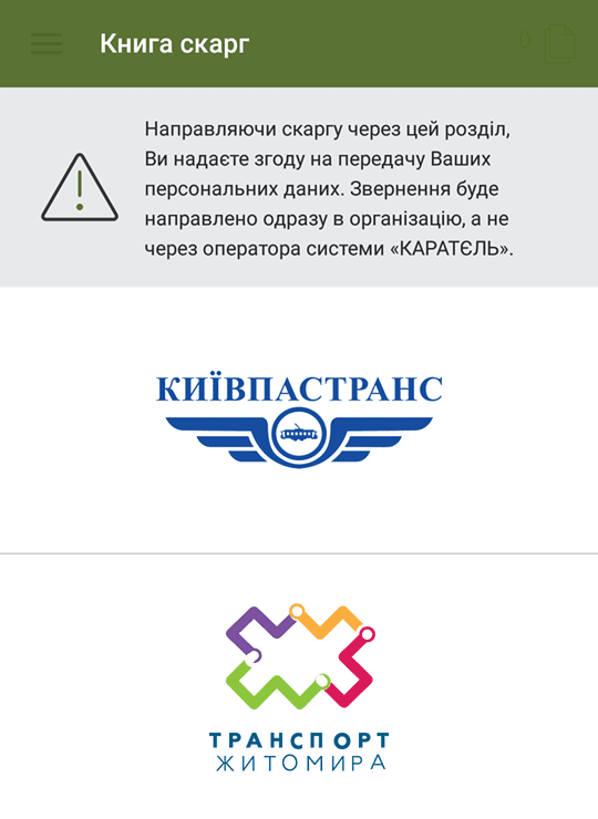 Зробити це можна через мобільний застосунок «КАРАТЄЛЬ», використавши опцію – «Книга скарг». Кожен користувач може поскаржитися на порушення безпосередньо до профільного комунального підприємства. Потрібно вказати номер маршруту та транспортного засобу, озвучити проблему, додати фото або відео для підтвердження своїх слів.