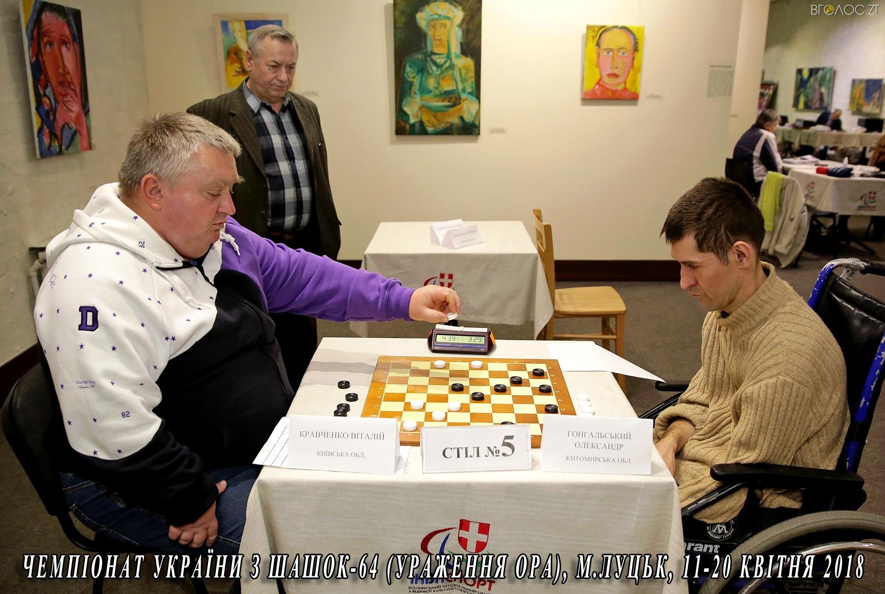 У Луцьку з  11 по 20 квітня відбувся Чемпіонат України з шашок – 64 серед спортсменів із ураженнями опорно-рухового апарату. Кращі шашкісти приїхали позмагатись з усіх куточків України за звання найсильнішого. Чемпіоном України серед чоловіків став житомирянин Олександр Гонгальський. Про це повідомила прес-служба Житомирського РЦ “Інваспорт”.