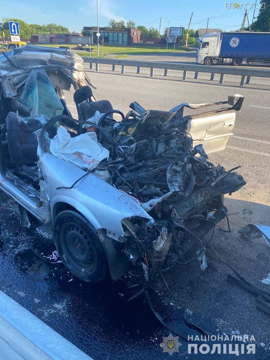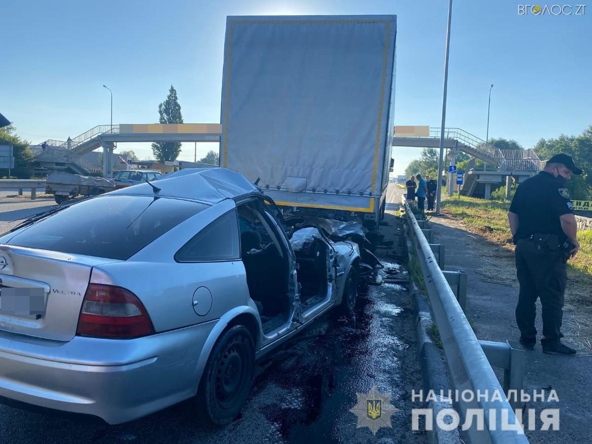 “Попередньо, водій автомобіля Опель, 21-річний житель Вінницької області, не впорався з керування та зіткнувся з вантажівкою «Вольово» з напівпричепом, під керуванням 42-річного жителя Чернігівщини, що стояла на узбіччі. У результаті ДТП загинули двоє людей: водій та 81-річна пасажирка легковика. Ще одна пасажирка цього ж автомобіля, 56-річна жителька Львівщини, отримала тілесні ушкодження та ушпиталена до реанімаційного відділення Коростишівської лікарні. Нині триває встановлення всіх причин та обставин події”, – йдеться у повідомленні.